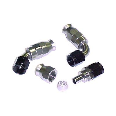 Hose ends (reuseable and crimp), adapters, banjos for high pressure PTFE (Teflon) lined hose (-3AN through -8AN sizes).